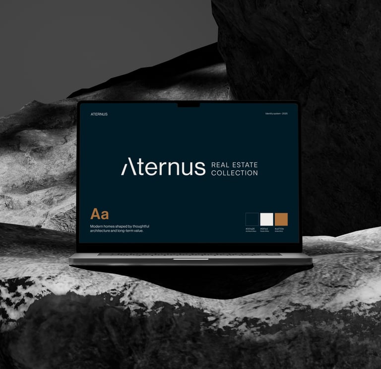 This visual identity was created for Aternus, a real estate developer that had been operating for several years without a consistent brand system. The goal was to build a clear foundation that would reflect who they are today - serious and trustworthy, with a luxury feel that still remains approachable for a wider audience.