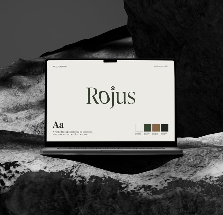 This rebrand was created for Rojus (meaning “Paradise” in Lithuanian), an existing housing project that needed a more clear and distinctive identity. The client felt their current branding did not reflect the real essence of the project - a premium, individual luxury homes, surrounded by pine forests, designed for people who value privacy, comfort, and a slower pace.
